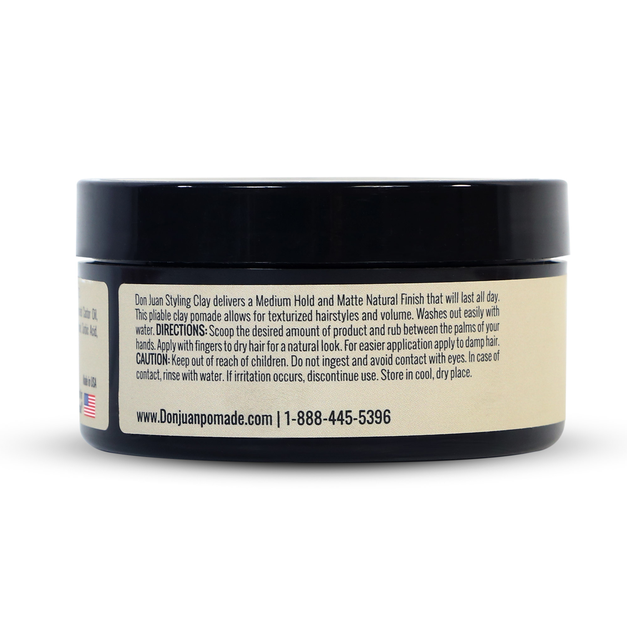 Don Juan Handcrafted Styling Clay delivers a Medium Hold and Matte Natural finish that will last all day. This pliable clay pomade allows for texturized hairstyles and volume. Washes out easily with water.
