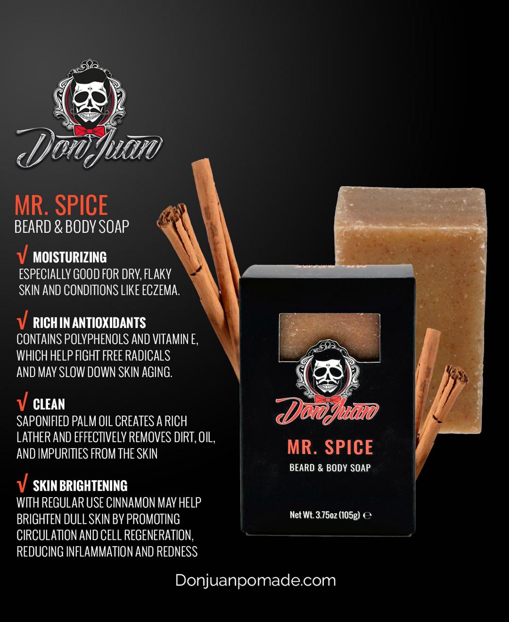Mr. Spice Beard & Body Soap is a paraben free long lasting soap with all organic ingredients.